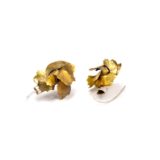 Les boucles d’oreilles se composent d’une délicate fleur martelée avec un cœur en granulation en argent 925/°°, une tige et un fermoir poussette belges en argent 925/°°.